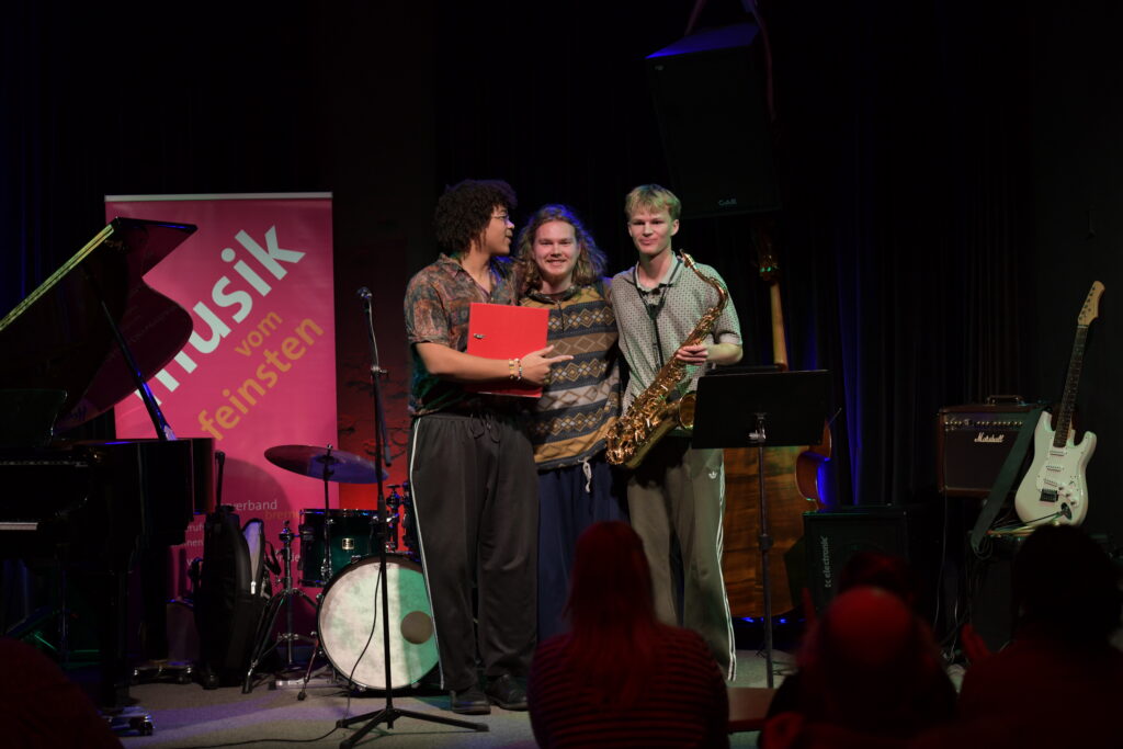 Vor vollem Haus präsentierten sich im einstündigen Konzert die beiden Solisten Konrad Fischer und Simon Hoppe am Flügel sowie die beiden Bands „Nicht ganz Standard“ und „Gen Jazz“. Im Bandwettbewerb überzeugte der geschlossene Gesamteindruck der Band „Nicht ganz Standard“ die Fachjury (Christian Frank und Marc Prietzel). Die jungen Musiker:innen, die ihre Band in der Musik AG der Oberstufe an der Oberschule am Leibnizplatz gegründet haben, dürfen sich über die Weiterleitung zur Bundesbegegnung Jugend jazzt vom 14.-17. Mai 2026 in Halle freuen. Sie erhalten darüber hinaus einen Studiopreis für eine professionelle Aufnahme, gestiftet vom Studio Nord Bremen.